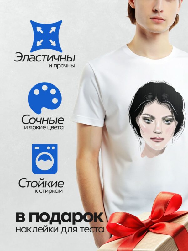 Термонаклейка на одежду DTF / Лицо девушки с выразительными глазами и черными волосами.