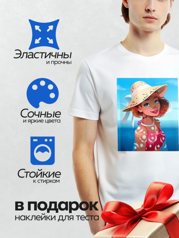 Термонаклейка на одежду DTF / Девушка в летней шляпе и купальнике на пляже.
