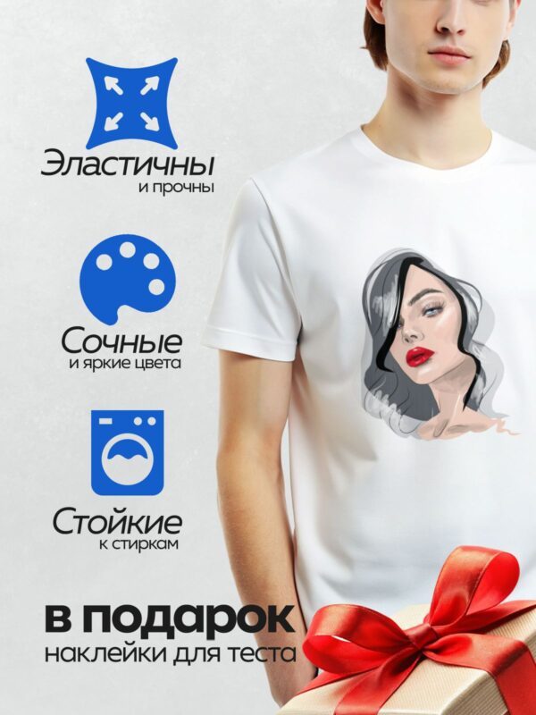 Термонаклейка на одежду DTF / Стилизованный портрет девушки с волнистыми волосами и яркими губами.