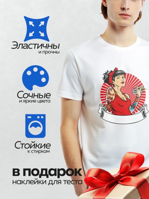 Термонаклейка на одежду DTF / Девушка в стиле пин-ап с тату-машинкой, тигром, змеёй и рыбой.