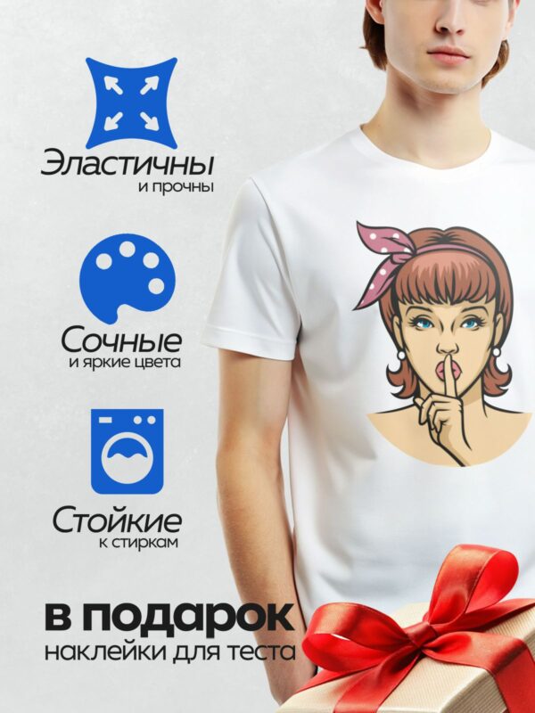Термонаклейка на одежду DTF / Девушка в стиле поп-арт с жестом “Тссс”.