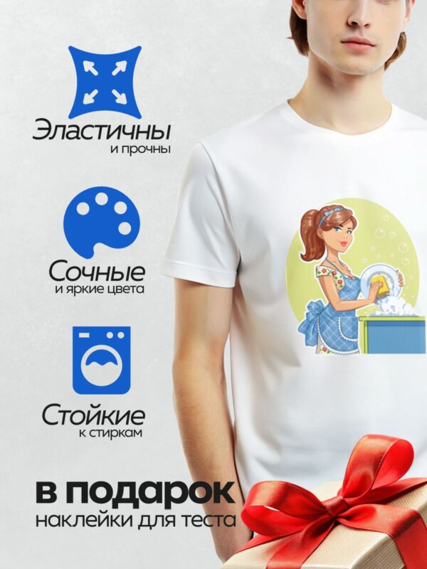 Термонаклейка на одежду DTF / Девушка в фартуке моет посуду на кухне.