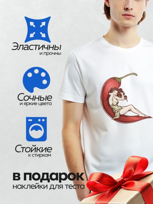 Термонаклейка на одежду DTF / Женщина в стиле пин-ап сидит на красном перце чили.