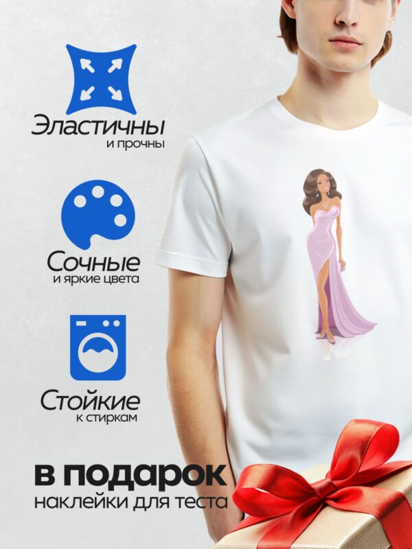 Термонаклейка на одежду DTF / Девушка в сиреневом платье с открытыми плечами.