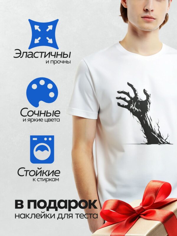 Термонаклейка на одежду DTF / Черная рука зомби, вылезающая из земли.