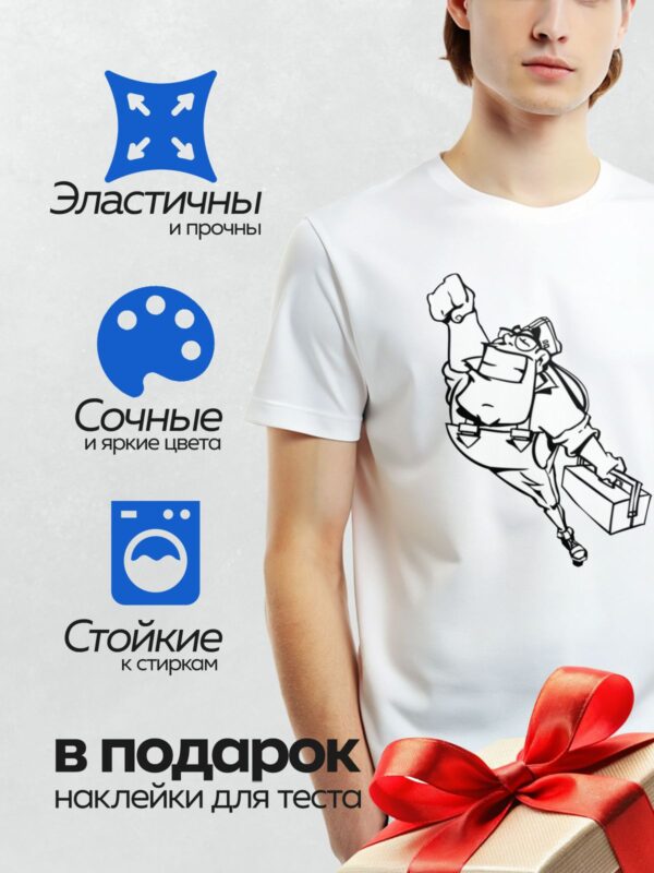 Термонаклейка на одежду DTF / Мультяшный рабочий в каске с чемоданчиком.