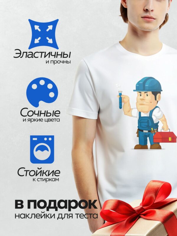 Термонаклейка на одежду DTF / Мультяшный ремонтник с пробиркой и ящиком с инструментами.