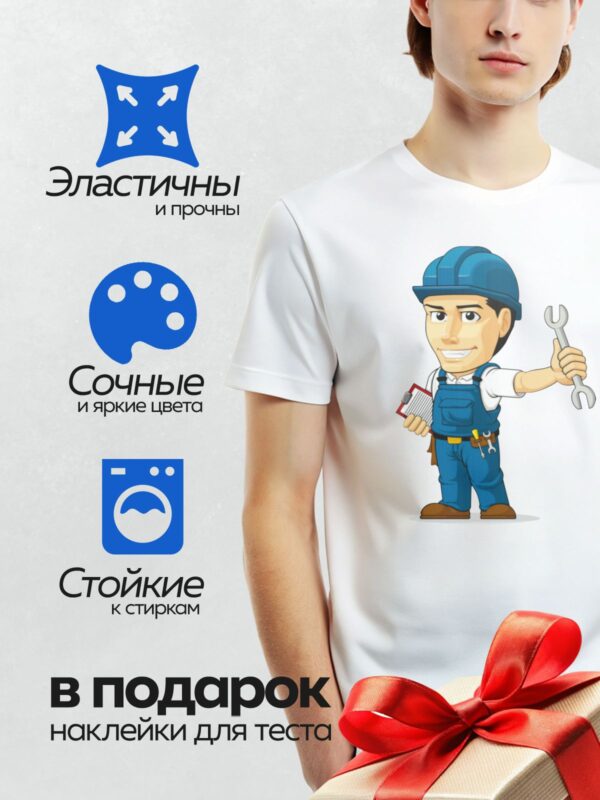 Термонаклейка на одежду DTF / Мультяшный ремонтник с гаечным ключом и планшетом.
