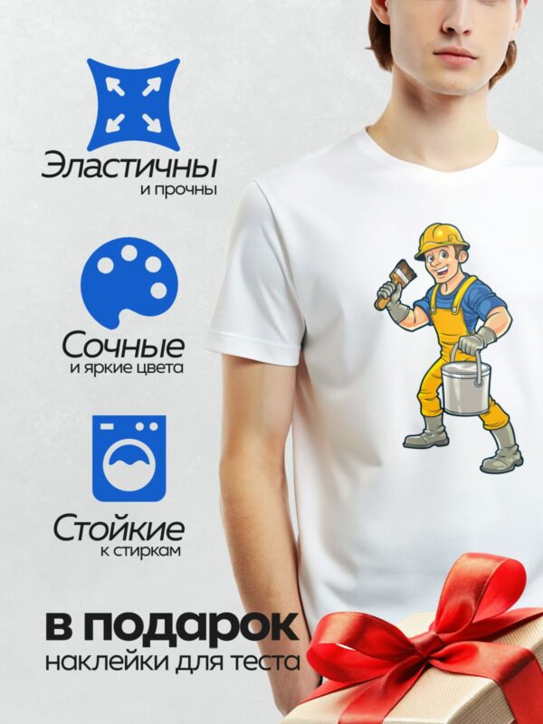 Термонаклейка на одежду DTF / Мультяшный маляр с кистью и ведром краски.